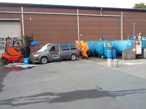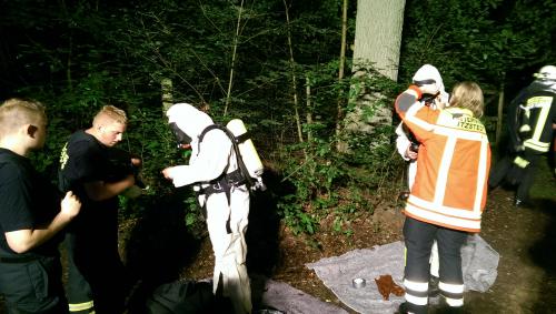 Die Polizei erkundete die Lage und forderte uns zum Aufspüren von brennbaren Gasen an.