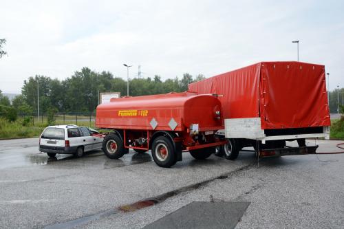 Zuvor wurde das Fahrzeug natürlich gegen Wegrollen gesichert.
