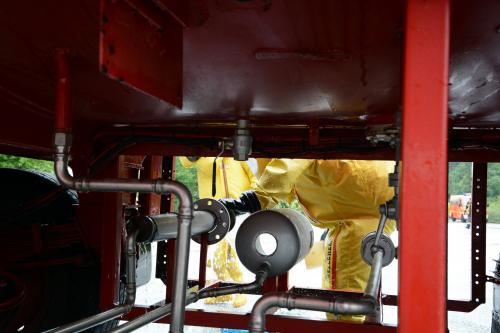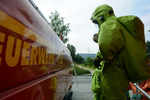 Es wurde ein Feuer im S3 Labor im Forschungszentrum mit 4 vermissten Personen vermutet. Hierbei handelte es sich um eine Übung. Es wurde die Zusammenarbeit mit der Feuerwehr und den Einheiten für Gefährliche Stoffe geübt.
